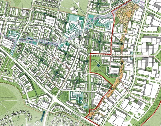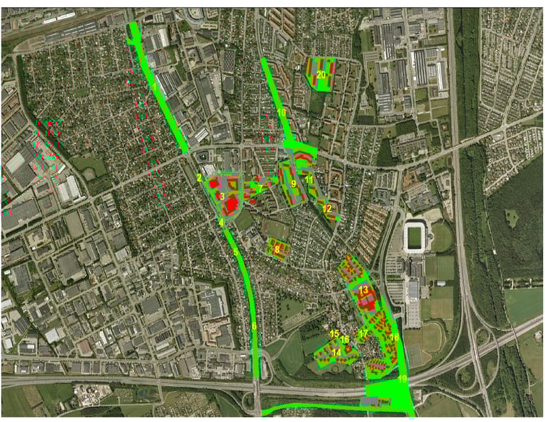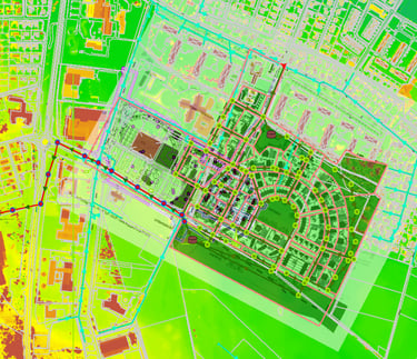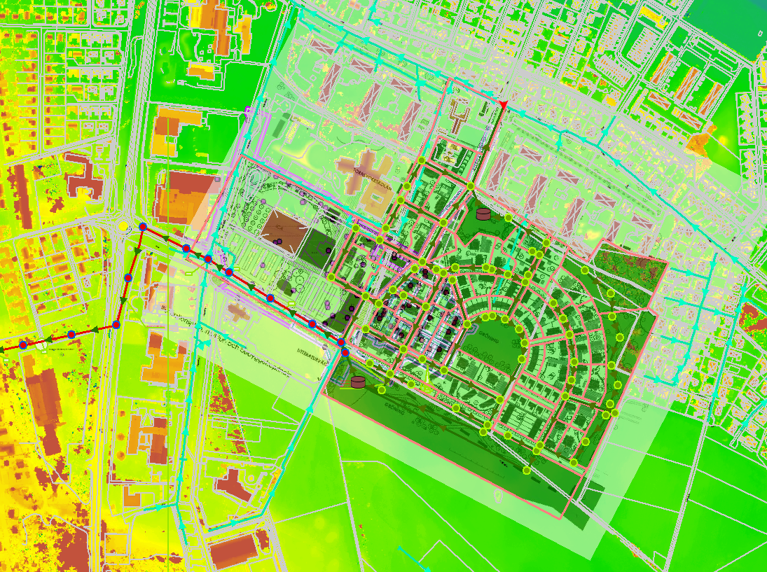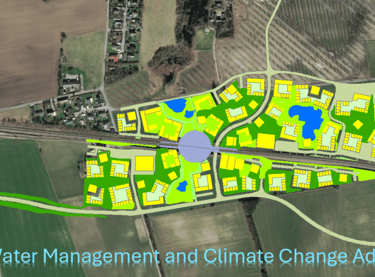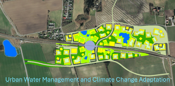 MIKE Urban Modelling, design, and climate adaptation solutions for a 30 ha urban development including residential, commercial areas, and a train station (approx. 10,000 PE).
