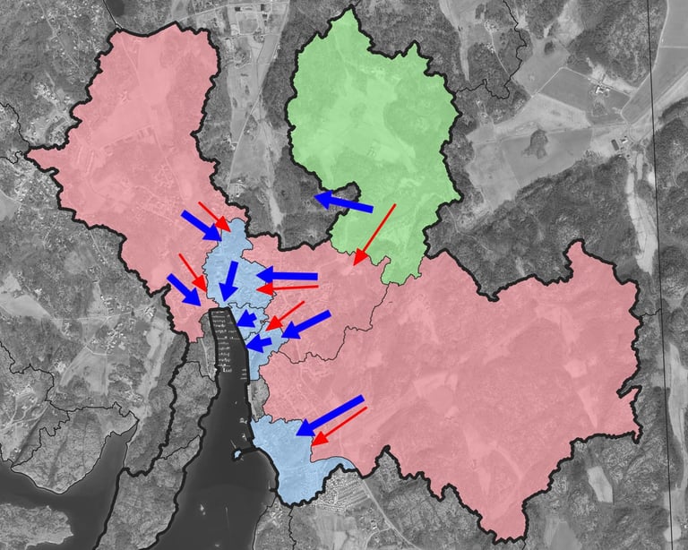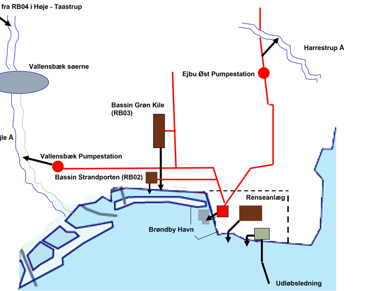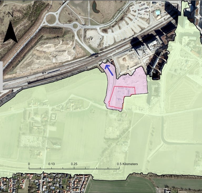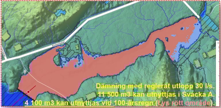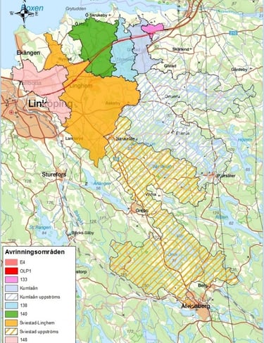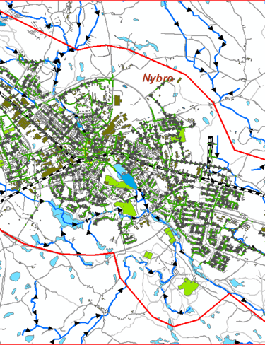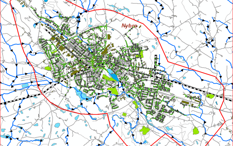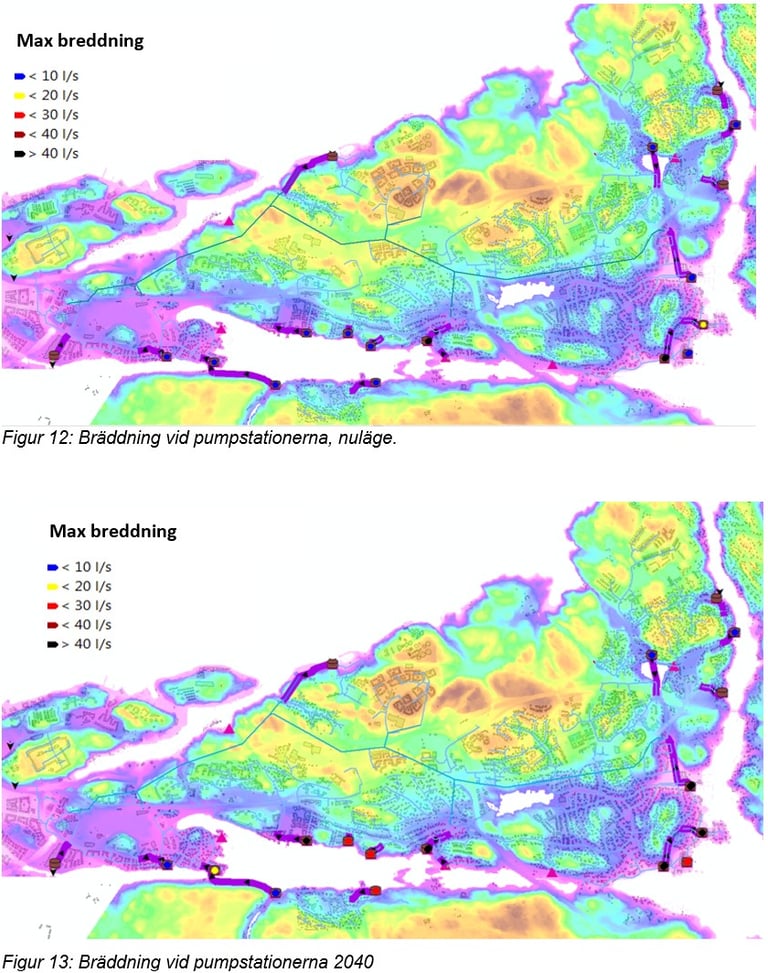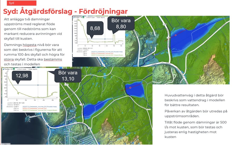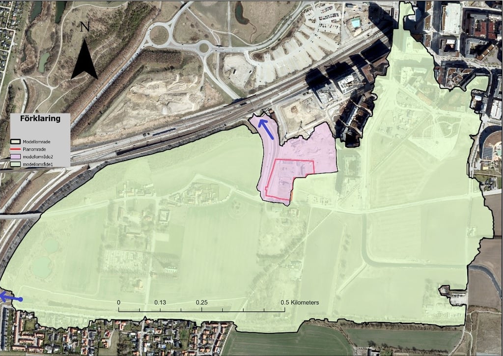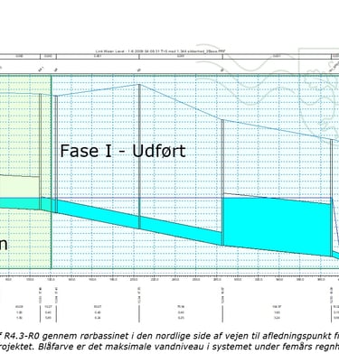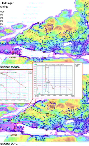 Recipient analysis for downstream water bodies in an Airport development area. Modelling performed using MIKE+ and StormTac. Project for Castellum.