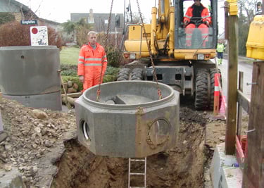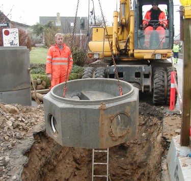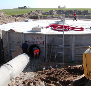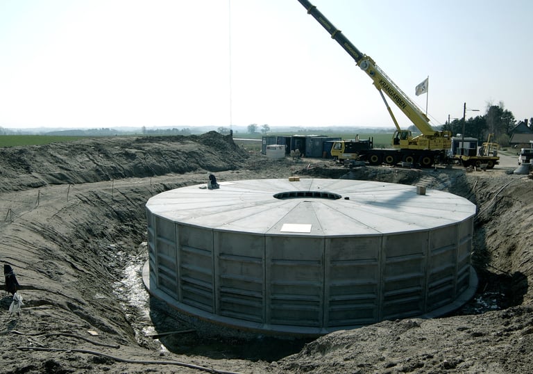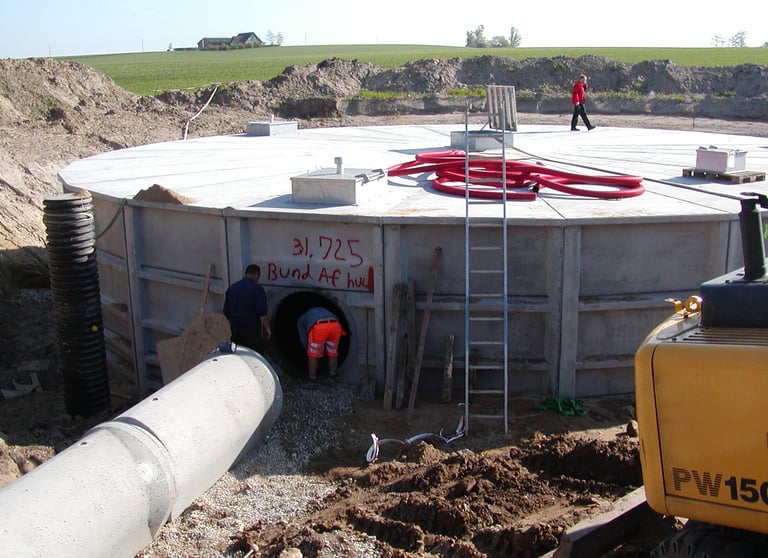 Construction of a 1,200 m³ underground circular basin for a combined sewer system and elimination of flooding in Ganløse, Frederikssundsvej, and Stenløse.