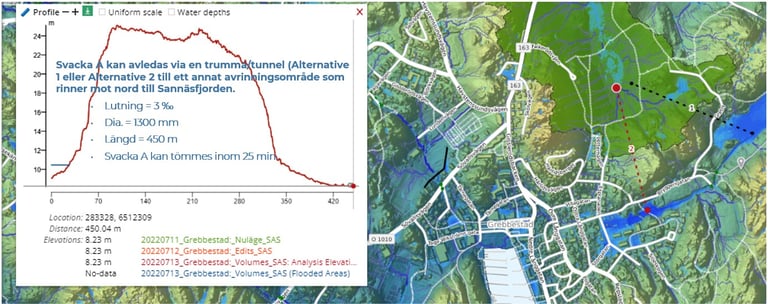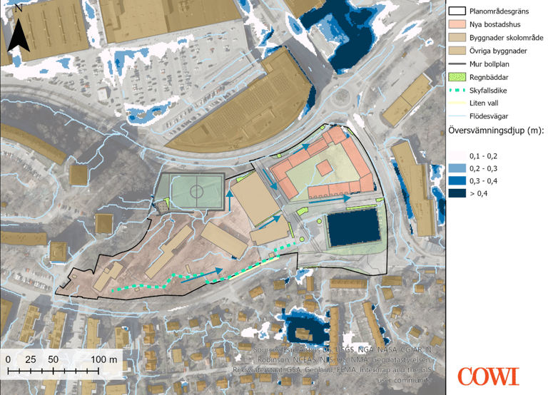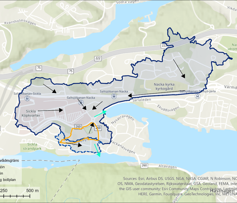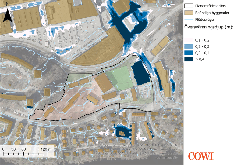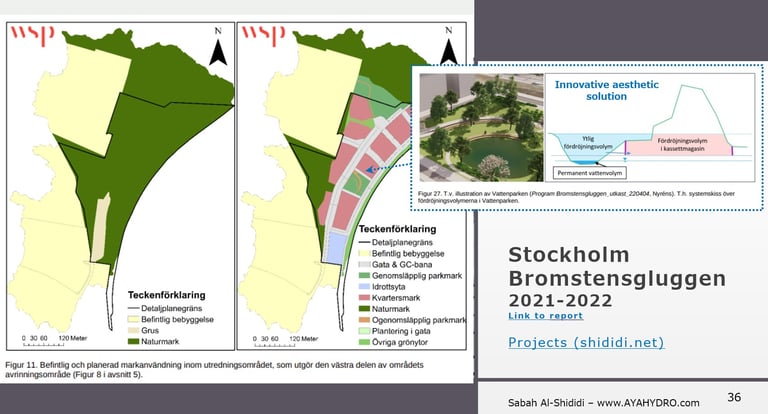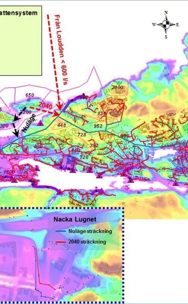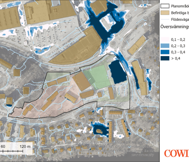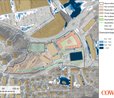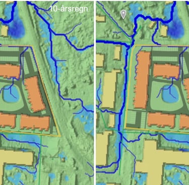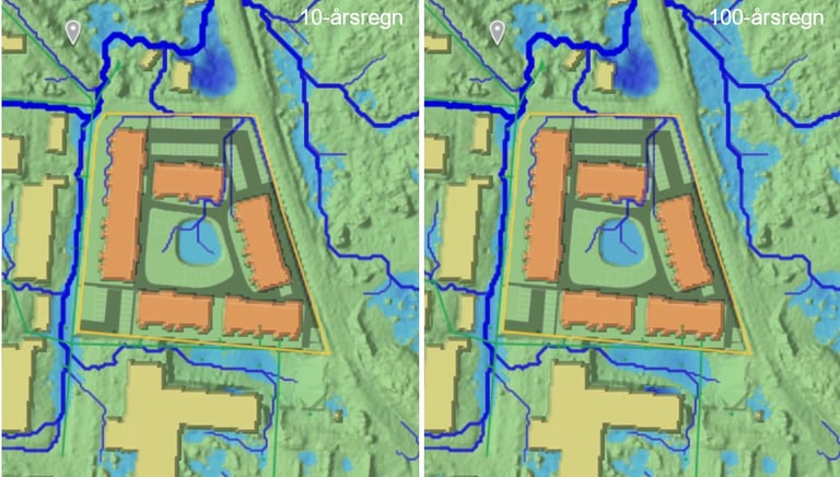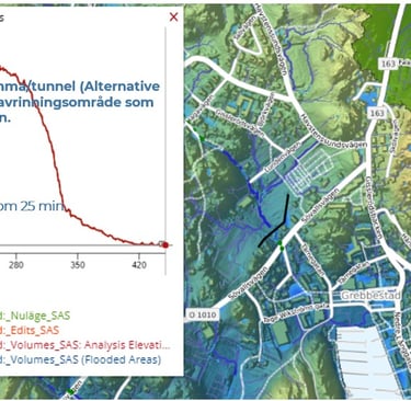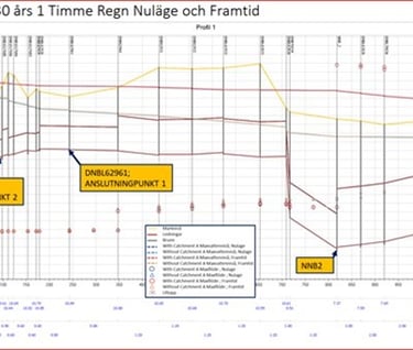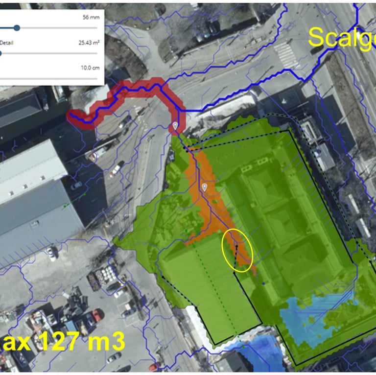 Stormwater and cloudburst investigation for a development area. Modelling conducted using Scalgo and StormTac. Project for Nacka Municipality.