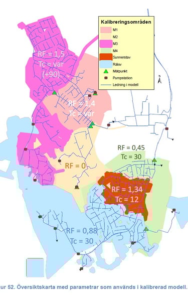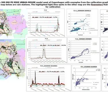 Development and calibration of regional MIKE URBAN MOUSE-RDII model (10,000 ha / 300,000 PE).