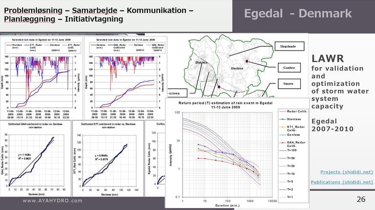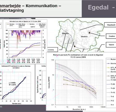 Flood modelling and cloudburst analysis for 10-, 20-, and 100-year events, including Copenhagen rainfall scenarios.