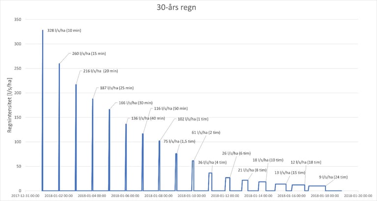 Design and modelling of stormwater and cloudburst systems including pipe networks, channels, culverts, ponds, and retention basins over a 30 ha catchment. Tools: Scalgo and Storm Tac.