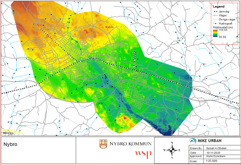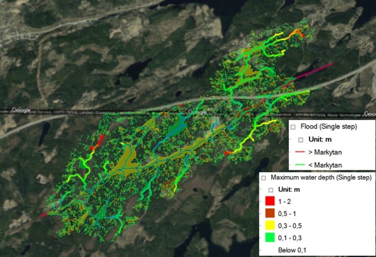 Responsible for stormwater and cloudburst modelling using a coupled 1D–2D hydrodynamic model to assess the impact of a new railway corridor (~10 km southeast of Borås). Project for Trafikverket.